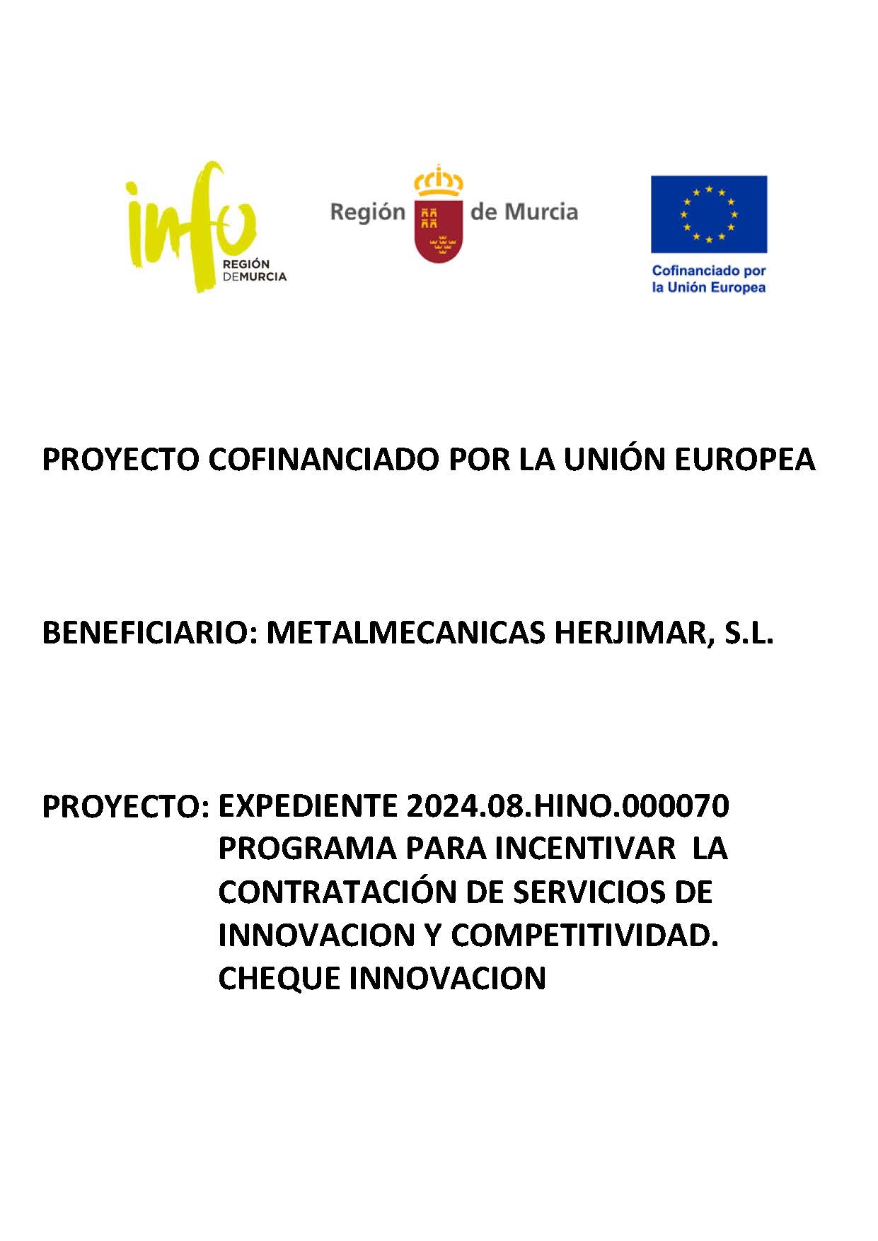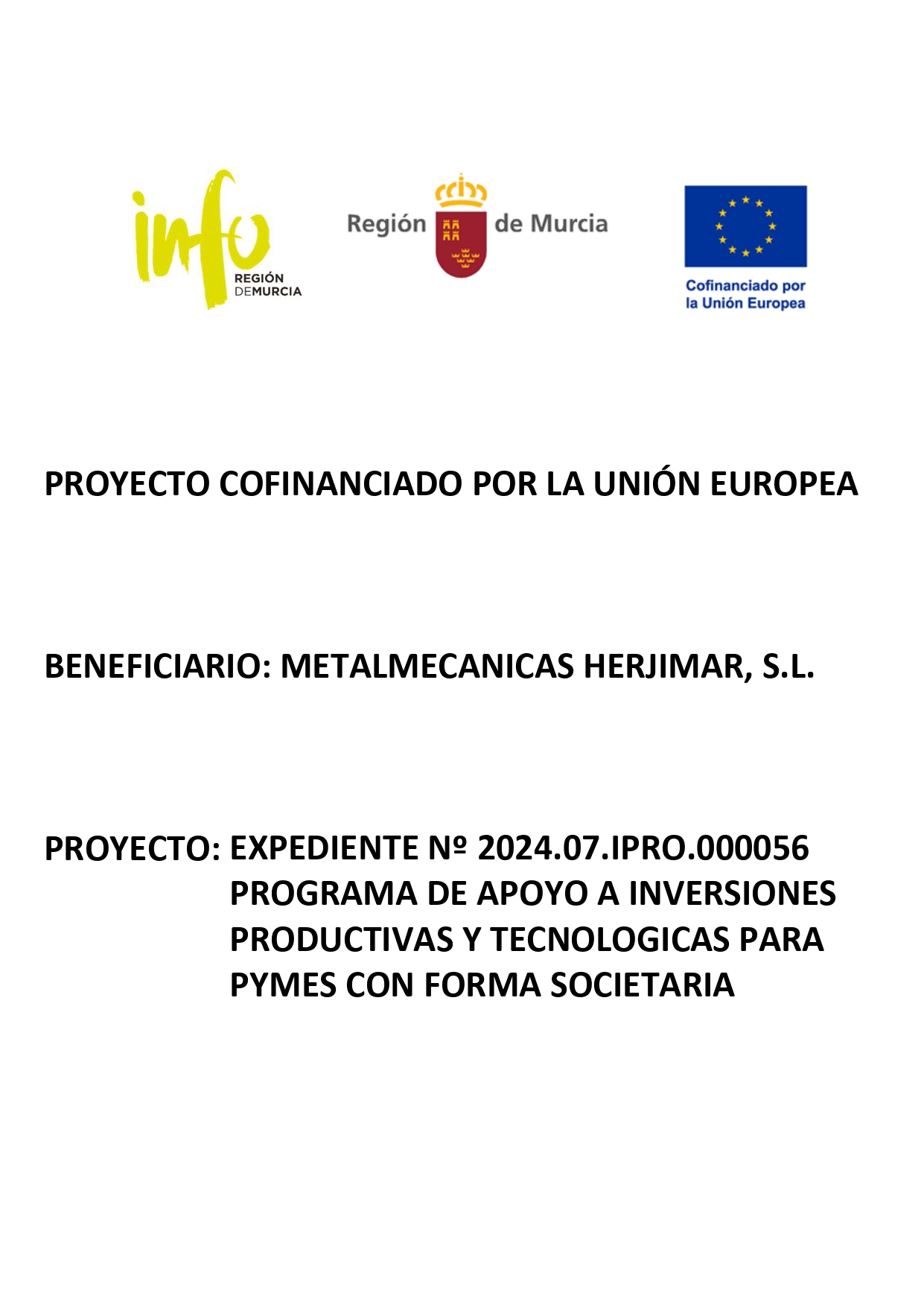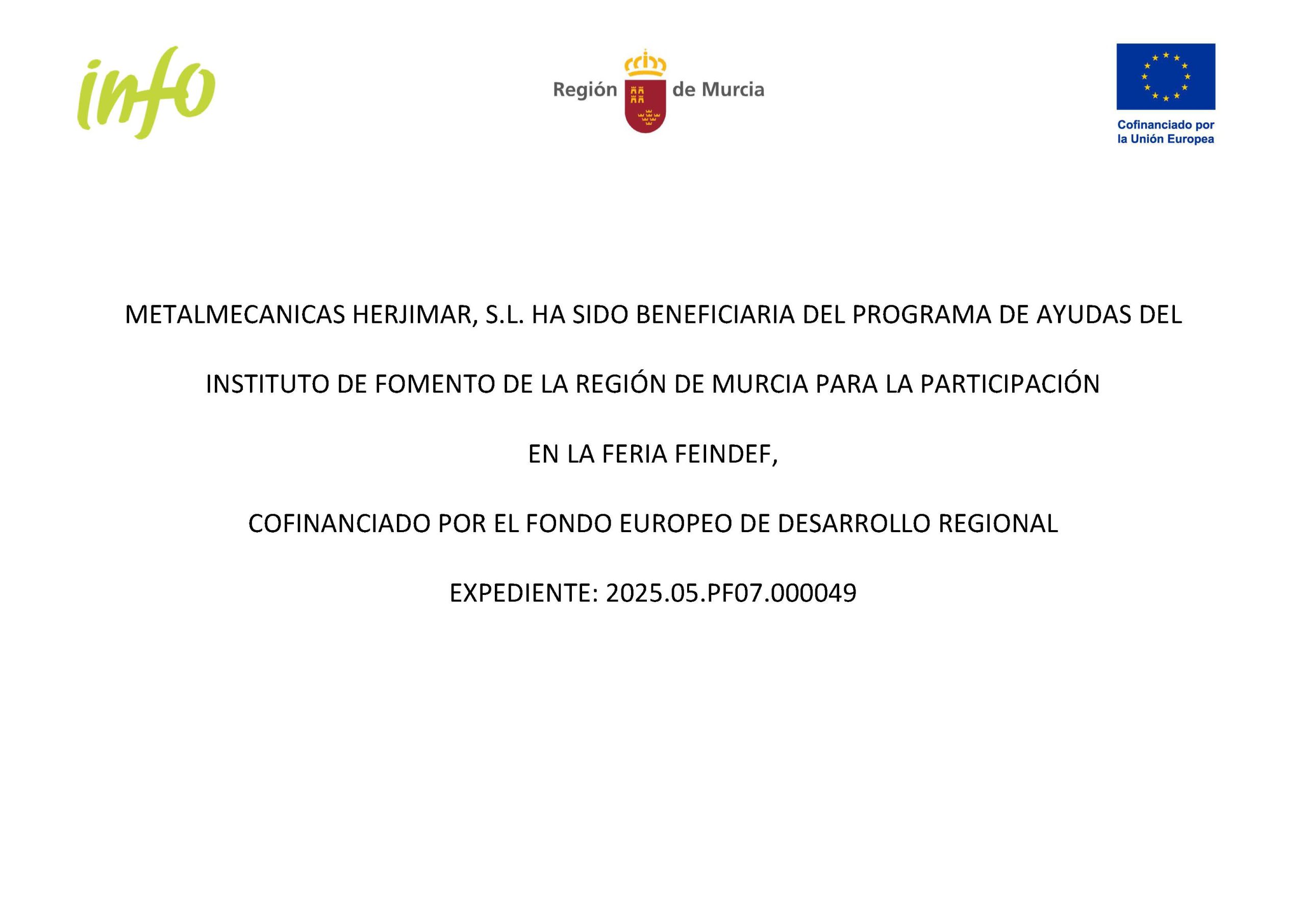 MetalMecánicas Herjimar S.L. ha sido beneficiaria de distintos programas de apoyo a la inversión, digitalización, sostenibilidad e innovación industrial, cofinanciados por el Instituto de Fomento de la Región de Murcia y el Fondo Europeo de Desarrollo Regional (FEDER).
